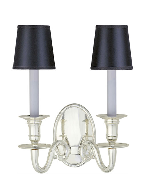 Chart House Grosvenor House Two-Light Sconce in polished silver is a Visual Comfort Model D101139. Shade sold separately - Silk Bell Shade. Size:10-1/2"H x 10-1/2"W, extends 8", (2) light 60 watts each without shade, 40 watts each with shade. Traditional silhouettes adapt to today's proportions and performance for gracious versatility. Rich, hand-rubbed finishes accentuate every detail and enhance their timeless beauty.